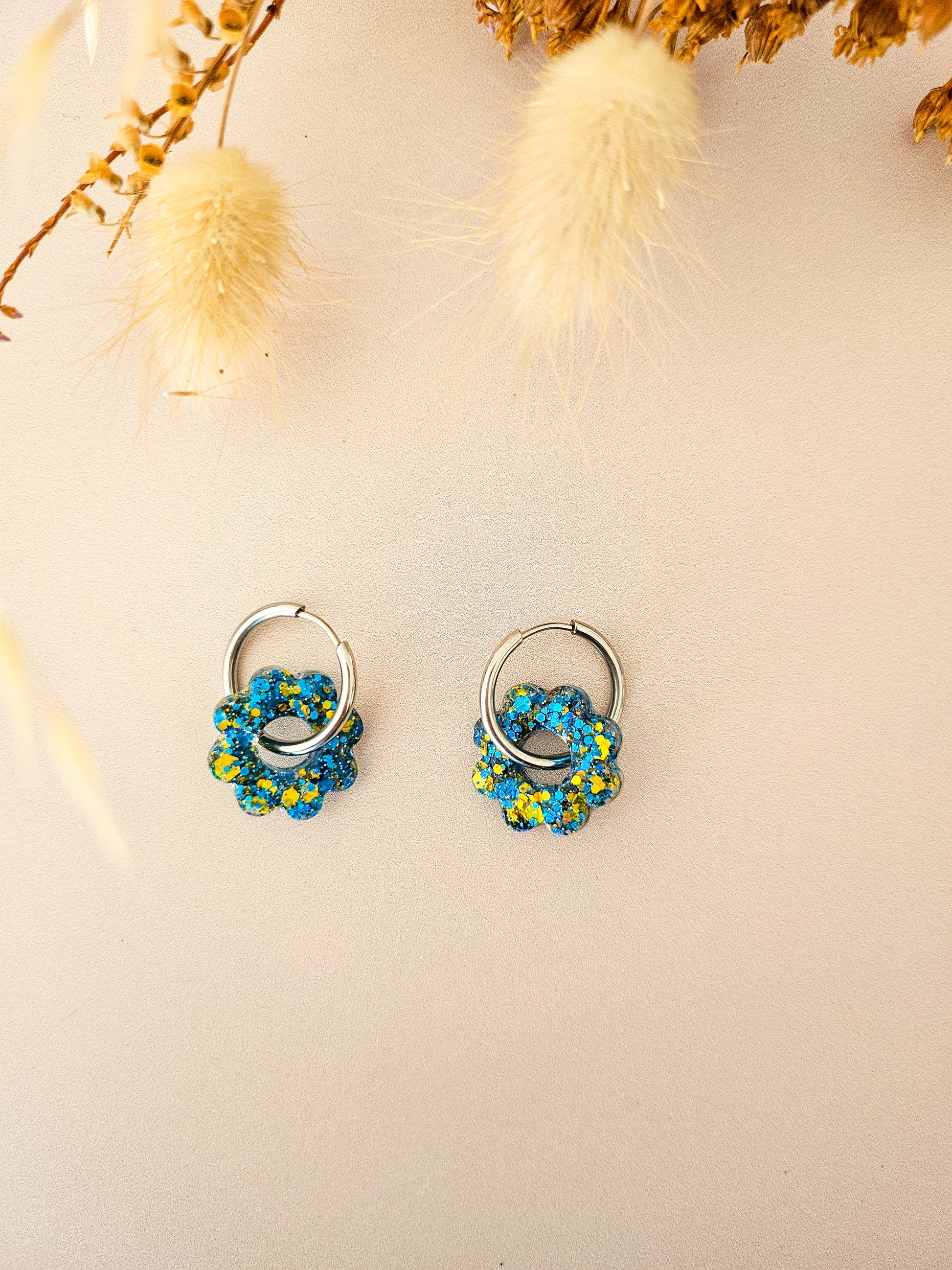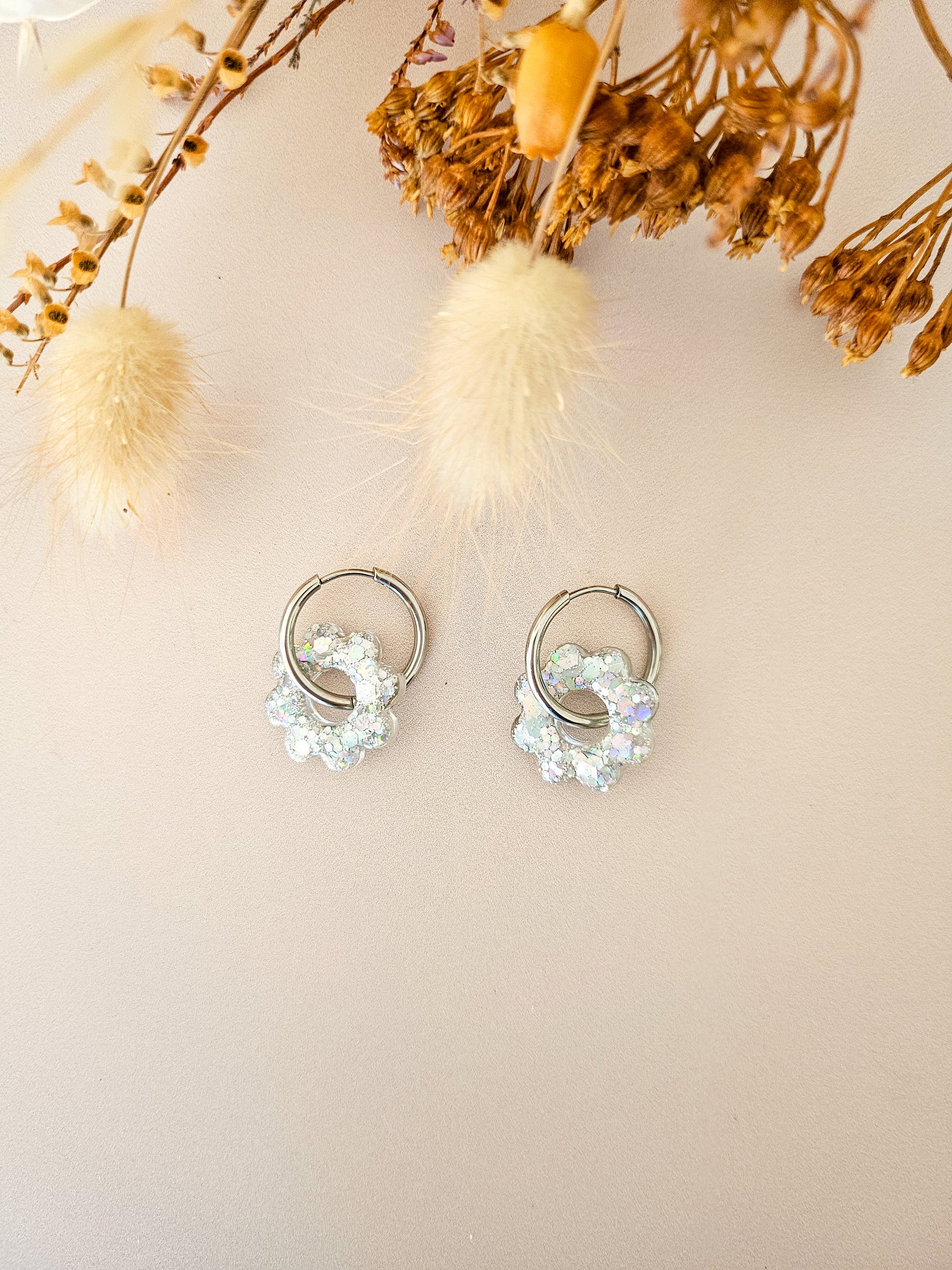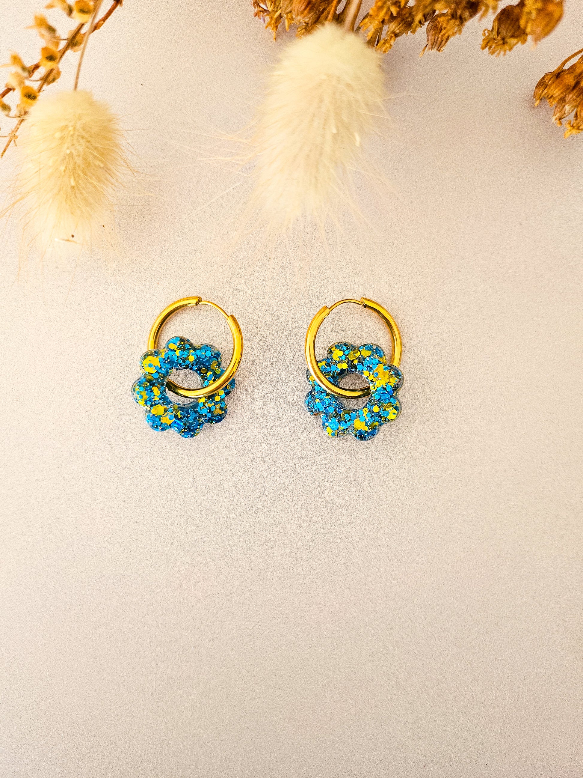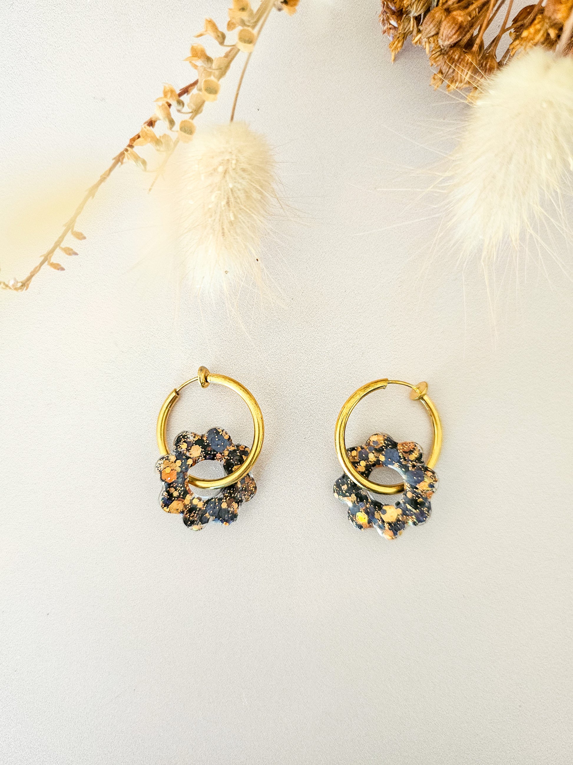Ces boucles sont nées d’une envie simple : pouvoir briller sans s’enfermer dans un seul style. Chaque pampille fleur est coulée, poncée et montée à la main dans notre atelier. Réalisée en résine pailletée artisanale, elle reflète la lumière en douceur, avec des nuances vibrantes selon la couleur choisie 🌈 Les créoles sont disponibles en version classique ou clip, dorées ou argentées — pour s’adapter à toutes les oreilles et à toutes les envies. Et le plus beau ✨ ? Les pampilles sont interchangeables : garde tes créoles préférées, et fais évoluer ton look au fil des saisons, de tes tenues ou de ton humeur.